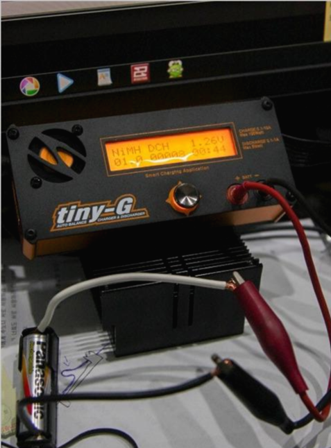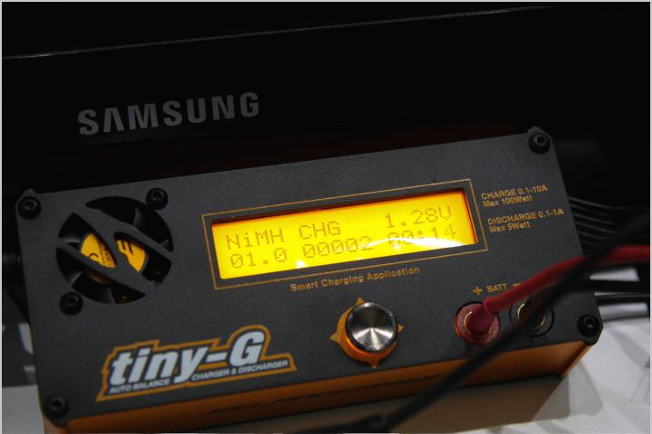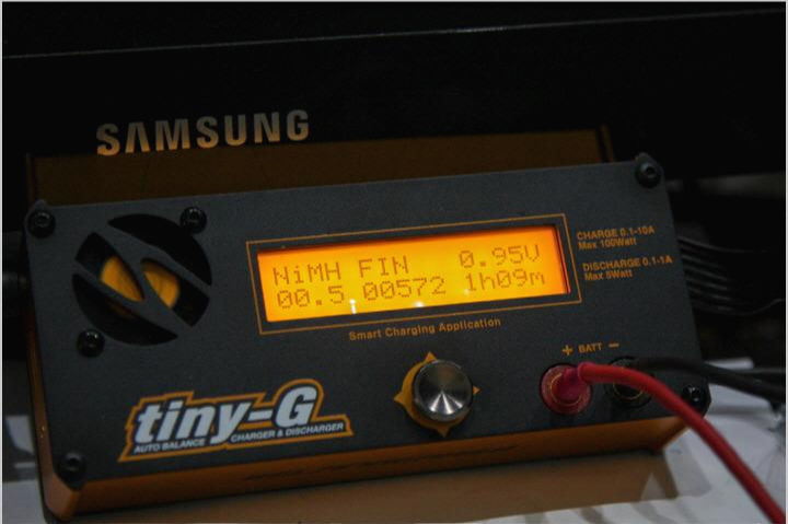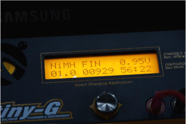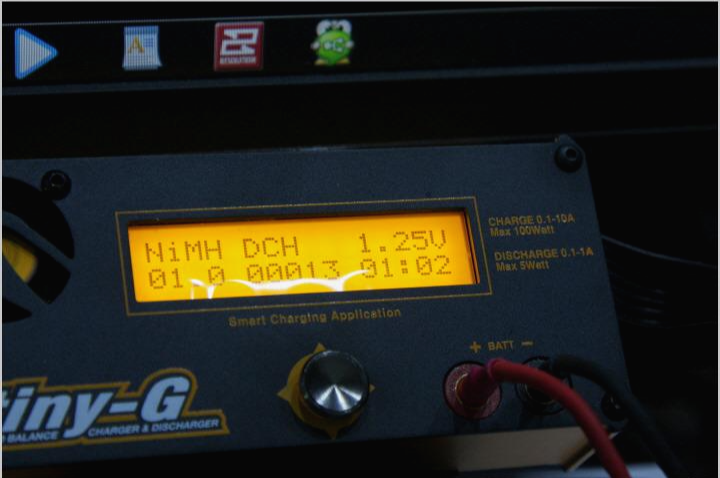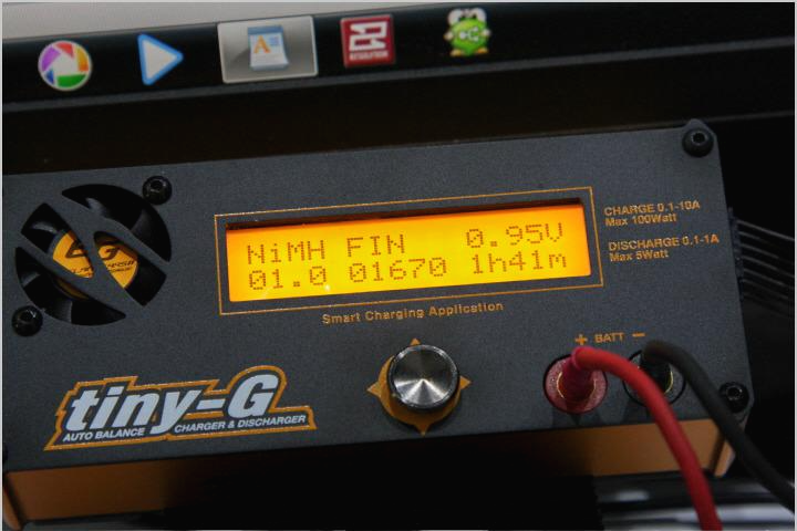 이제 비교 테스트될 니켈 메탈 수소 배터리를 충전합니다. 표시된것과 같이 1암페어로 고속충전을 했습니다.