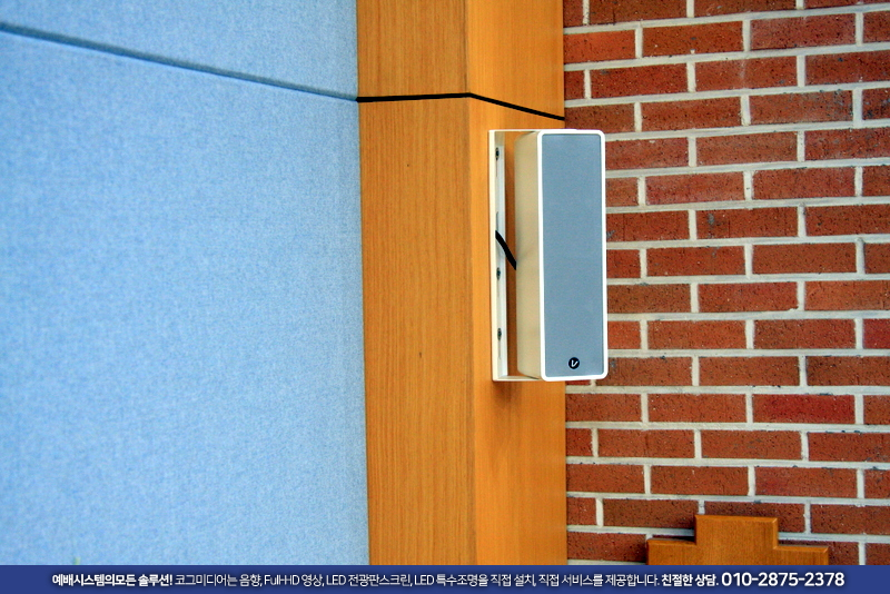 강대상 모니터스피커는 컬럼어레이 VERITY. COL4.3 제품이 귀 높이 벽체에 양쪽으로 설치가 되었습니다.
