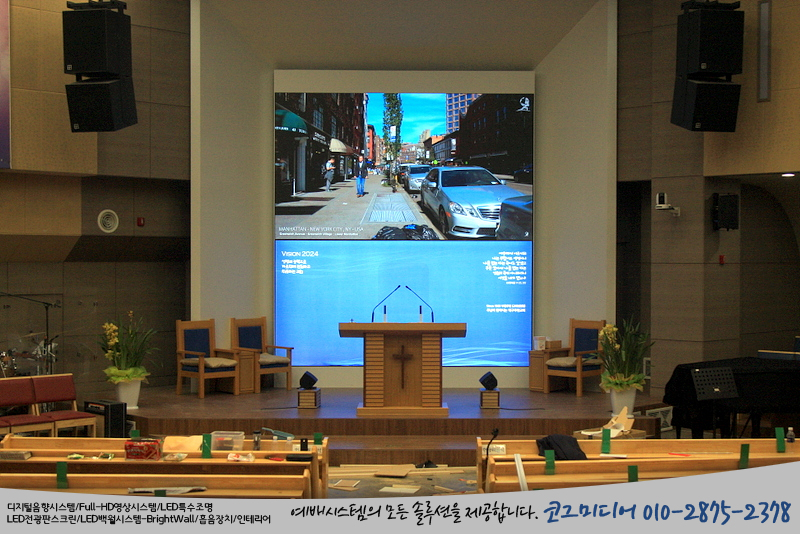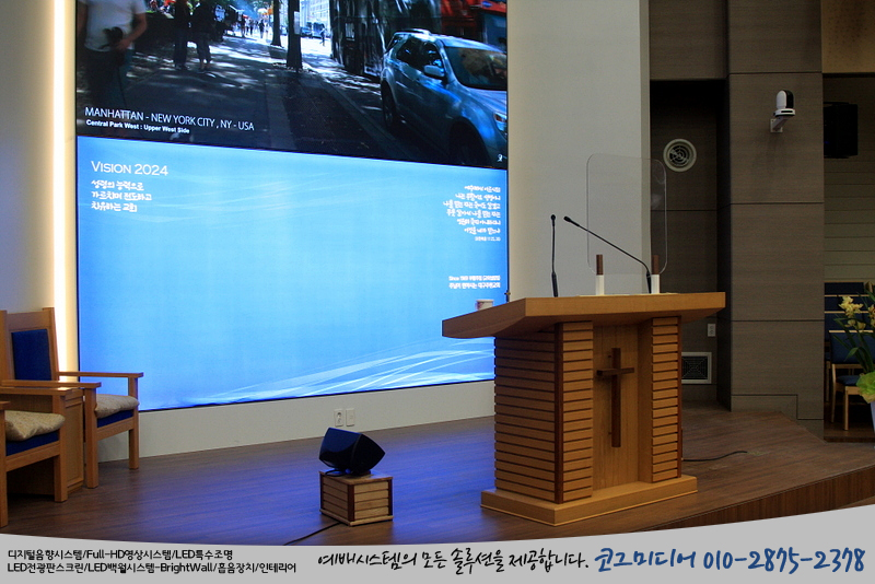 대구 주원교회에는 P2.5mm 167inch LED 전광판스크린과 브라이트월이 같이 설치가 되었습니다.