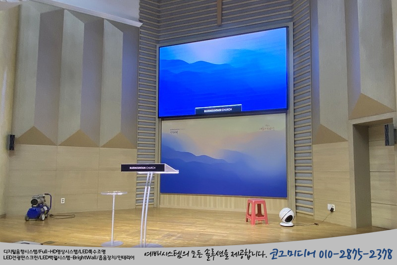 코그미디어에서 설치하는 브라이트월은 카메라 영상이 잡히는 강대상 뒷편에 설치하는