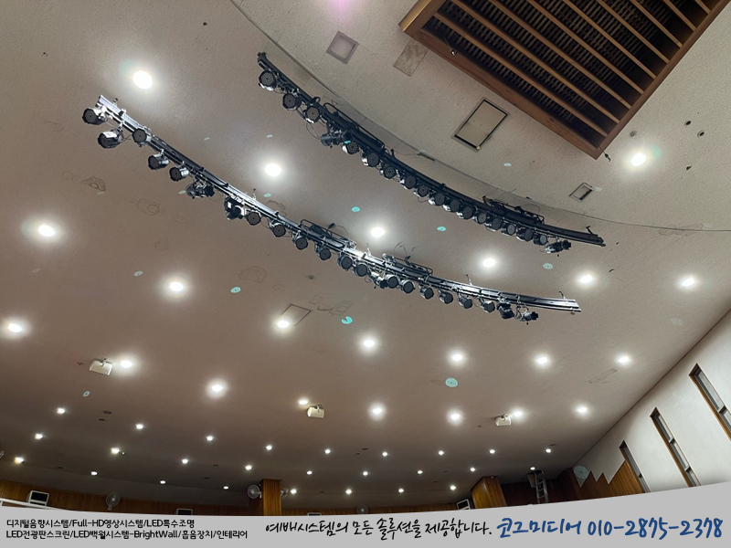 강대상 파라이트 3개, 무대 파라이트 12개가 설치되었고요,