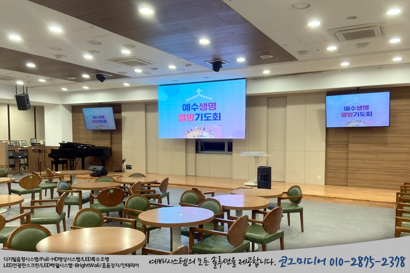 이런 예배실처럼 천고가 낮고, LED 전광판스크린이 낮게 설치되는 곳에서는