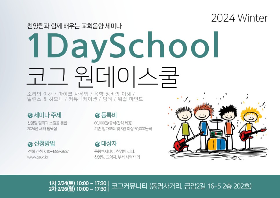 구정이 지나고, 2월 24일(토), 26일(월) 2차례에 걸쳐서 1DaySchool이 열립니다.