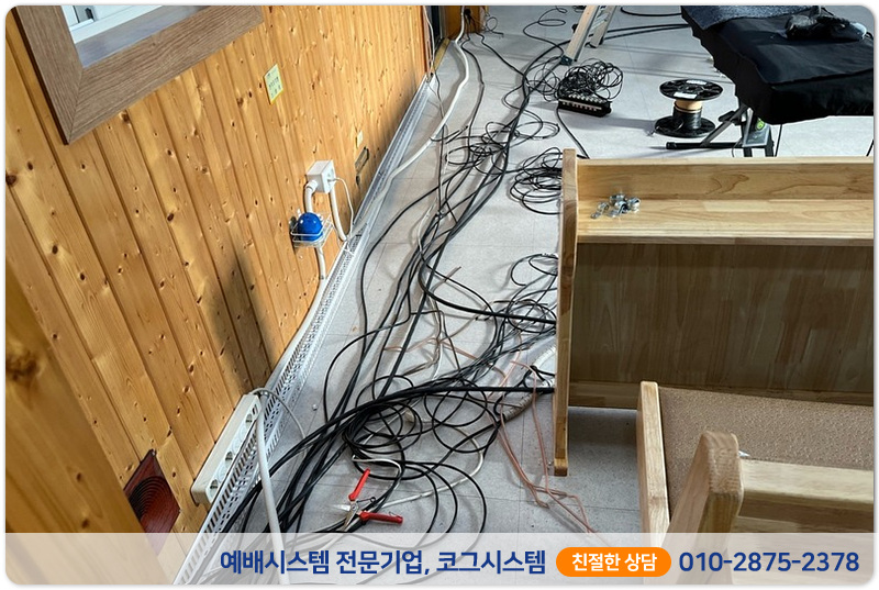 스피커케이블과 전기케이블, 필요하다면 심지어 방송실의 랜케이블도 손을