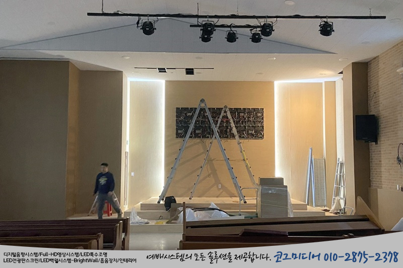 하지만 LED 전광판스크린은 강대상 기준에 맞추어 설치가 되었습니다.