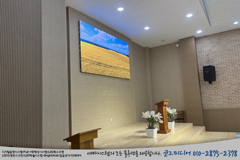 하지만 LED 전광판스크린은 강대상 기준에 맞추어 설치가 되었습니다.