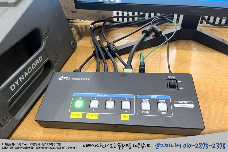 HD 영상시스템은 2대의 카메라와 NTU의 4채널 스위쳐로 구성이 되었고요,