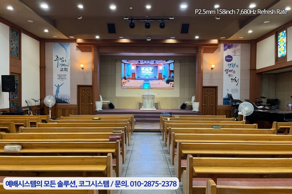 교회는 상황에 따라 다르지만 158inch 제품이 제일 많이 설치가 되기도 하죠.