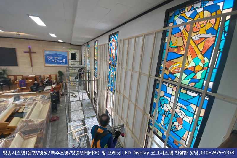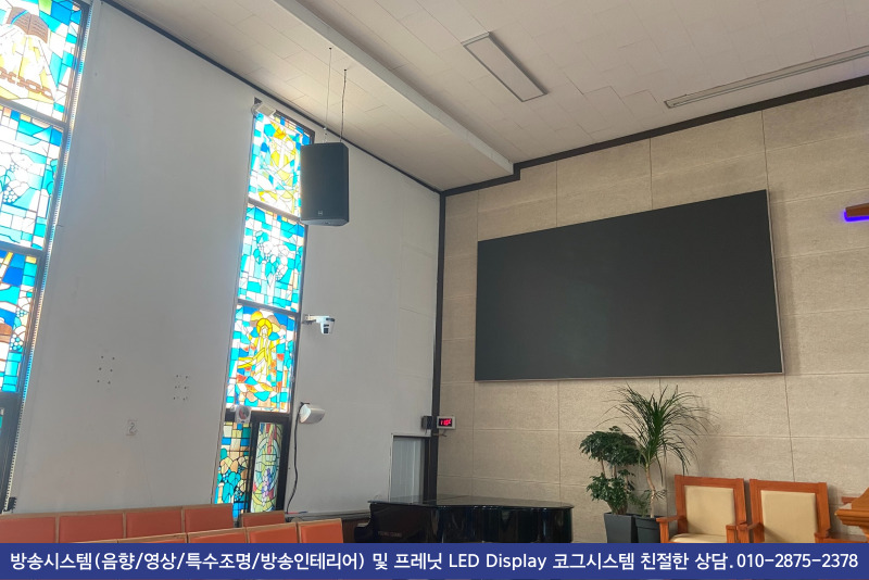 교회에서 그대로 두기를 원하셔서, 인테리어 작업 후 작은 스피커로 교체 해 드렸습니다.