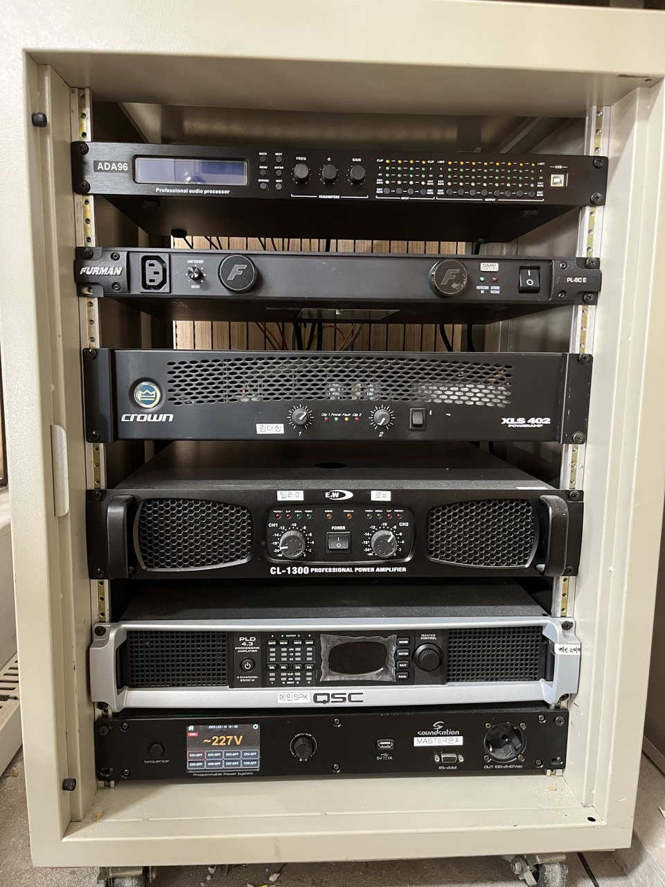 그리고 출력 좋은 QSC 앰프까지 있네요. 금상첨화입니다.