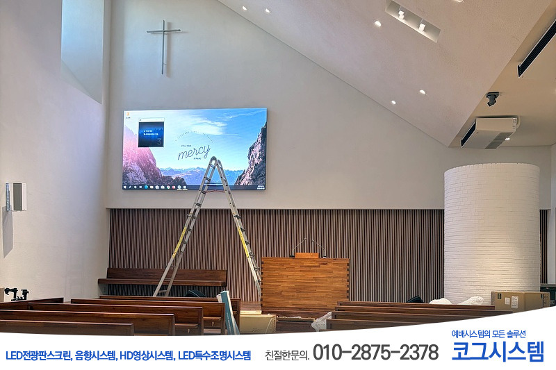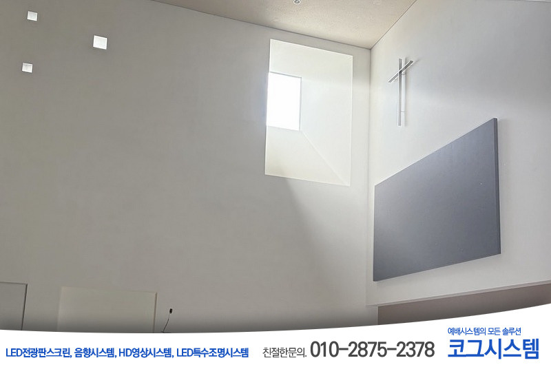 특히 육통교회의 경우, 인테리어적으로 LED 전광판스크린 좌측에 큰 창이 있습니다.