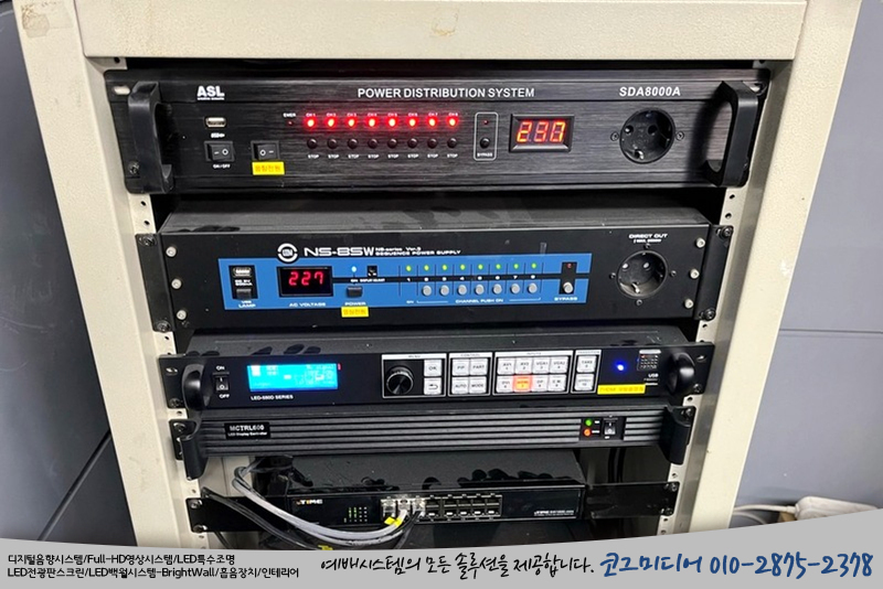 모든 시스템을 켜고 끄는데 순차전원기의 스위치 1개와 LED 전광판스크린 스위치 1개만으로 모두 제어가 되는 셈입니다.