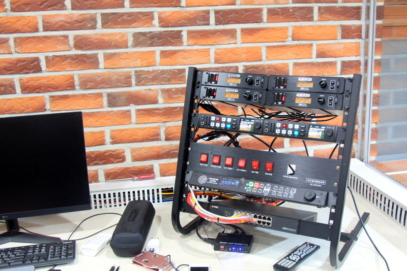 방송부스 책상에 별도의 랙을 설치하여 VS8의 본체를 설치하였습니다.